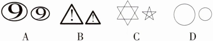 C 选项 C 中一个是六角星,一个是五角星,形状不相同,不符合相似图形的定义。