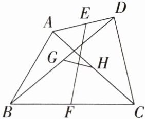 4. 如图,在四边形 ABCD 中,E、F 分别是 AD、BC 的中点,G、H 分别是 BD、AC 的中点,AB = CD,EF 与 GH 有什么位置关系?请说明理由.