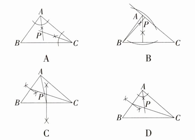 5. 新考向 「2025 河南鹤壁淇县期中」下列选项中,用尺规作图所得点 P 是△ABC 的重心的是(
