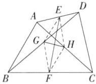 解析 EF⊥GH。理由:如图,连结GE、GF、HF、EH。