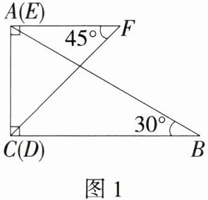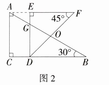 7. 「2025甘肃天水甘谷一模,★☆」如图1,将三角尺$ABC和三角尺DEF$叠放在一起,直角边$AC与DE$完全重合,已知$AB的长为16\mathrm{cm}$。若三角尺$DEF沿CB$方向移动到图2的位置,此时测得$OB的长为6\mathrm{cm}$,则移动距离$CD$为 ( )