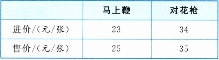 14. (16分)新考向传统文化朱仙镇木版年画是中国古老的传统工艺品之一,某文创商店购进“马上鞭”和“对花枪”两种木板年画作品,其进价和销售价如表所示: