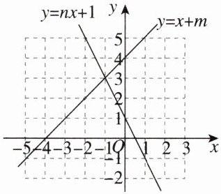 8. 如图,在平面直角坐标系中,一次函数$y= x+m与y= nx+1$的图象分别与y轴交于点$(0,4),(0,1)$,则关于x,y的二元一次方程组$\left\{\begin{array}{l} y= x+m-3,\\ y= nx+1\end{array}\right. $的解为(