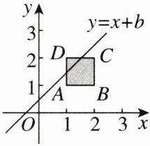 7. 如图,佳佳设计了一种挖宝游戏,屏幕上正方形$ABCD$内是宝藏区(含正方形边界),其中$A(1,1),B(2,1)$,沿直线$y = x + b$行走,则游戏者能够挖到宝藏时$b$的取值范围为 (