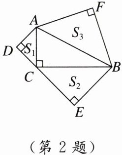 2. 如图,分别以$Rt△ABC的三边为斜边向外作Rt△ADC,Rt△CEB,Rt△AFB$,且$AD= DC,EC= EB,FA= FB,∠ADC= ∠CEB= ∠AFB= 90^{\circ }$,这三个直角三角形的面积分别为$S_{1},S_{2},S_{3}$,且$S_{1}= 9,S_{2}= 16$,则$S_{3}=$(