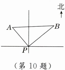 10. 如图,某港口$P$位于东西方向的海岸线上,甲、乙轮船同时离开港口,各自沿一固定方向航行,甲、乙轮船每小时分别航行12n mile和16n mile,1h后两轮船分别位于点$A,B$处,且相距20n mile.如果知道甲轮船沿北偏西$40^{\circ}$方向航行,则乙轮船沿