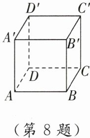 8. 如图是棱长为1的正方体,有一只聪明的蚂蚁从点$A爬到点C'$去吃糖,它走的是最短路线,则最短路线的长度是(