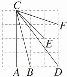 4. 如图是由16个边长为1的小正方形组成的,连接这些小正方形的若干个顶点,得到5条线段$CA$,$CB$,$CD$,$CE$,$CF$,其中长度是无理数的有(