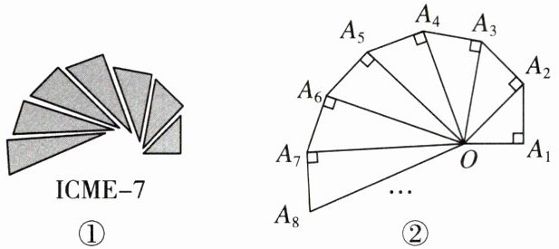 7.$\frac{3}{2}$ 【点拨】由勾股定理得$OA_{2}^{2}=1^{2}+1^{2}=2$,$OA_{3}^{2}=2+1^{2}=3$,$OA_{4}^{2}=3+1^{2}=4$,$OA_{5}^{2}=4+1^{2}=5$,……$OA_{9}^{2}=9$,所以OA₉=3,所以$S_{9}=\frac{3\times1}{2}=\frac{3}{2}$.