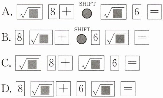 1. 用计算器求$\sqrt {8}+\sqrt [3]{6}$的近似值,其按键顺序正确的是(