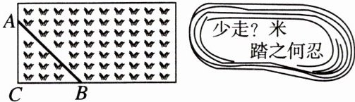 2. 如图是一块长方形草坪,AB是一条被踩踏的小路,已知AC= 12米,BC= 9米.为了避免行人继续踩踏草坪(走线段AB),小梅分别在A,B处各挂了一块下面的牌子,则牌子上“?”处是(