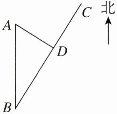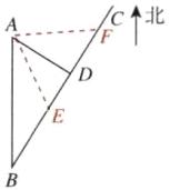 (2)如图,在射线BC上取点E,F,使得$AE=AF=200km$。又因为$AD⊥BC$,所以$EF=2ED$。