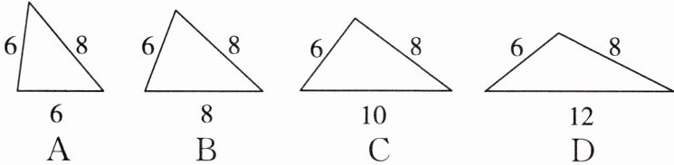 8. 如图,有四个三角形,各有一边长为6,一边长为8,若第三边的长分别为6,8,10,12,则面积最大的三角形是 (