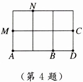 4. 如图,在由小正方形组成的$3×2$网格中,每个小正方形的顶点称为格点.点A,B,C,D,M,N均在格点上,其中点A,B,C,D能与点M,N构成一个直角三角形的是 (