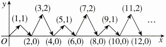 11. 新视角 规律探究题 如图,动点P在平面直角坐标系中按图中箭头所示方向运动,第1次从原点运动到点$(1,1)$,第2次接着运动到点$(2,0)$,第3次接着运动到点$(3,2),... $,按这样的运动规律,经过第2025次运动后,动点P的坐标是______
