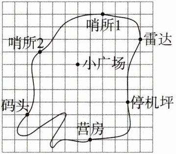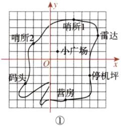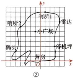 (2)如图②,他所经过的地方依次为停机坪、小广场、雷达、哨所2、码头、哨所1.