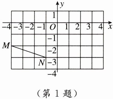 1. 线段MN在平面直角坐标系中的位置如图所示,若线段$M'N'$与线段MN关于y轴对称,则点M的对应点$M'$的坐标为 (