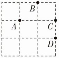 7. 如图,在$3×3$的正方形网格中有四个格点A,B,C,D,以其中一点为原点,网格线所在直线为坐标轴,建立平面直角坐标系,使其余三个点中存在两个点关于一条坐标轴对称,则原点是 (
