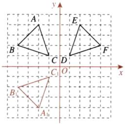 6. 如图所示的正方形网格中,每个小正方形的边长都为1,$△ABC,△EFD$的顶点都在网格线的交点上,在图中建立平面直角坐标系xOy,使$△ABC与△EFD$关于y轴对称,点C的坐标为$(-1,1).$