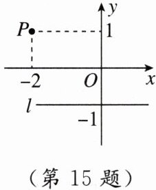 15. 如图,点$P(-2,1)与点Q(a,b)关于直线l:y= -1$对称,则$a+b= $