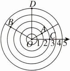 2. 如图,已知$∠AOC= 30^{\circ },∠BOC= 150^{\circ }$,OD平分$∠BOA$,若点A表示为$(2,30^{\circ })$,点B表示为$(4,150^{\circ })$,则点D表示为(
