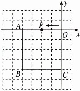 13. 如图,在平面直角坐标系xOy中,四边形OABC为正方形,其边长为4.有一动点P,自点O出发,以每秒2个单位长度的速度沿$O→A→B→C→O$运动,则点P运动