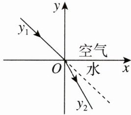 10. 如图表示光从空气进入水中入水前与入水后的光路图,若按如图建立平面直角坐标系,并设入水前与入水后光线所在直线的表达式分别为$y_{1}= k_{1}x,y_{2}= k_{2}x$,则关于$k_{1}与k_{2}$的关系,正确的是(