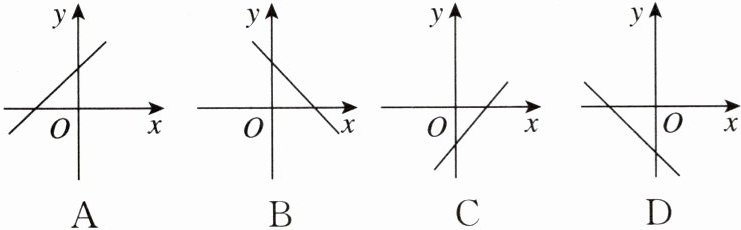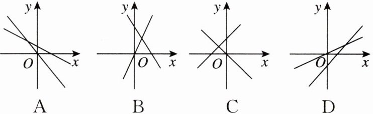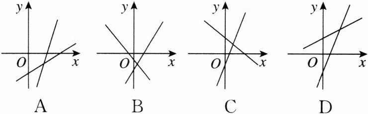 C 【点拨】因为 $ y_1 = mx + n^2 + 1 $,$ n^2 + 1 > 0 $,所以该直线一定与 $ y $ 轴正半轴相交,所以排除 A,B 选项;对于 C 选项,可知 $ m < 0 $,所以 $ -m > 0 $,故 C 选项可能成立;对于 D 选项,可知 $ m > 0 $,所以 $ -m < 0 $,另一条直线应该是下降的,故不符合题意.