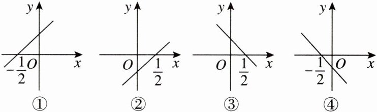 D 【点拨】因为 $ y = k(x - \frac{1}{2}) $,所以直线过点 $ (\frac{1}{2},0) $,故①④不符合题意;$ y = k(x - \frac{1}{2}) = kx - \frac{1}{2}k $,当 $ k > 0 $ 时,$ -\frac{1}{2}k < 0 $,所以该函数图象经过第一、三、四象限,故②符合题意;当 $ k < 0 $ 时,$ -\frac{1}{2}k > 0 $,所以该函数图象经过第一、二、四象限,故③符合题意.