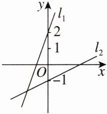 1. 如图,在同一平面直角坐标系中,一次函数$y = k_1x + b_1与y = k_2x + b_2$(其中$k_1,k_2 \neq 0$,$k_1,k_2,b_1,b_2$为常数)的图象分别为直线$l_1,l_2$,下列结论正确的是(