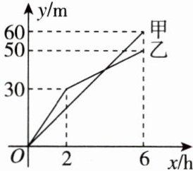 4. 甲、乙两个工程队分别同时挖掘两段河渠,所挖河渠的长度y(m)与挖掘时间x(h)之间的函数关系如图所示,以下信息一定正确的有(