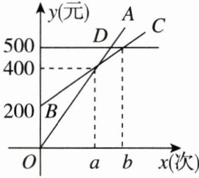 ②学生卡,所需费用y(元)与游泳次数x(次)的关系如图中射线BC所示.