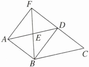 $\left\{ \begin{array} { l } { \angle B A E = \angle F D E, } \\ { A E = D E, } \\ { \angle B E A = \angle F E D, } \end{array} \right.$