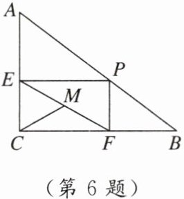 6. [2023沧州期末]如图,在Rt△ABC中,∠ACB= 90°,BC= 8,AC= 6,P为边AB上一动点(P不与B,A重合),PE⊥AC于E,PF⊥BC于F,M为EF的中点,则CM的取值范围是(