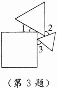 3. 一个正方形和两个等边三角形的位置如图所示,若$∠3= 50^{\circ }$,则$∠1+∠2=$(