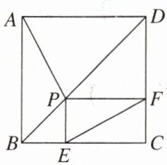 9. 易错题如图,已知正方形ABCD的边长为2,P是对角线BD上一点,$PE⊥BC$于点E,$PF⊥CD$于点F,连接AP,EF.给出下列结论:
