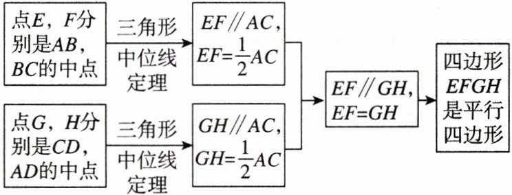 在数学课上,老师请同学们思考如下问题:如图①,我们把一个四边形ABCD的各边中点E,F,G,H依次连接起来得到的四边形EFGH是平行四边形吗?