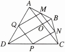 11. 如图,四边形ABCD的对角线AC,BD交于点O,点M,N,P,Q分别为边AB,BC,CD,DA的中点.有下列四个推断: