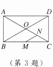 3. 如图,矩形ABCD中,AC,BD交于点O,M,N分别为BC,OC的中点,若$∠ACB= 30^{\circ },AB= 8$,则MN的长为(