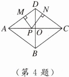 4. 如图,在菱形ABCD中,AC,BD交于点O,$AC= 8,BD= 6$,点P为线段AC上的一个动点,过点P分别作$PM⊥AD$于点M,$PN⊥DC$于点N,则$PM+PN$的值为(