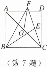 7. [2023重庆]如图,在正方形ABCD中,O为对角线AC的中点,E为正方形内一点,连接BE,$BE= BA$,连接CE并延长,与$∠ABE$的平分线交于点F,连接OF.若$AB= 2$,则OF的长度为(