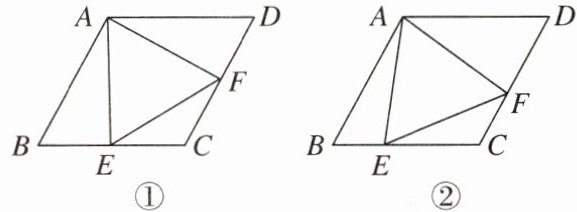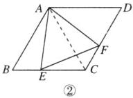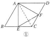 16. 学科素养 逻辑推理 如图①,菱形ABCD的一个内角$∠B= 60^{\circ }$,E为BC的中点,F为CD的中点,连接AE,AF,EF.