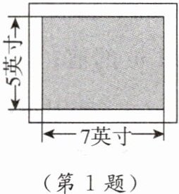 1. 情境题 生活应用 一份摄影作品的照片长为7英寸,宽为5英寸,如图所示,现将照片贴在一张矩形衬纸的正中央,照片四周外露衬纸的宽度相同;矩形衬纸的面积为照片面积的$\frac {9}{5}$倍,则照片四周外露衬纸的宽度应为(