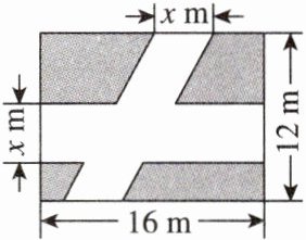 3. 母题教材P44随堂练习 在一块长16m、宽12m的矩形草坪上,要修建如图所示的两条甬路,并使甬路所占面积为原来矩形草坪面积的一半,则$x=$