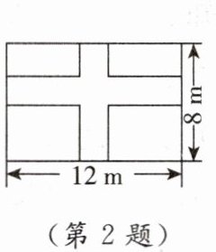 2. 如图,在一块长12m、宽8m的长方形空地上,修建同样宽的两条互相垂直的道路(两条道路各与矩形的一条边平行),剩余部分栽种花草,且栽种花草的面积为$60m^{2}$,则道路的宽应为