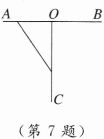 7. (新考向 知识情境化)如图,$ AB \perp OC $于点O,$ AO = BO = 50 \mathrm { cm } $,OC是射线,蚂蚁甲以2cm/s的速度从点A爬向点B,蚂蚁乙以3cm/s的速度从点O沿射线OC爬行,那么经过______s,两只蚂蚁和点O围成的三角形的面积为450cm^2.