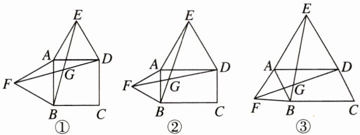 (3) 如图③, 在四边形$ABCD$由正方形到矩形再到一般平行四边形的变化过程中,$EB和FD$具有怎样的数量关系? 请直接写出结论, 无需证明.