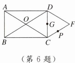 6. 新视角·动点探究题 2023·德阳 如图,$ □ ABCD $的面积为12,$ AC = BD = 6 $,AC与BD交于点O,分别过点C,D作BD,AC的平行线相交于点F,点G是CD的中点,点P是四边形OCFD边上的动点,则PG的最小值是( )