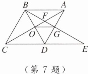 7. 易错题 如图,在菱形ABCD中,$ ∠BAD = 60^{\circ} $,AC与BD交于点O,E为CD延长线上的一点,且$ DE = CD $,连接BE分别交AC,AD于点F,G,连接OG,则下列结论: