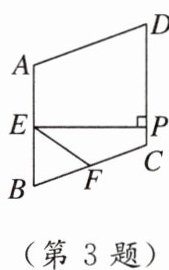 3. 如图,平行四边形ABCD中,$ ∠A = 110^{\circ} $,$ AD = DC $. E,F分别是边AB和BC的中点,$ EP⊥CD $于点P,则$ ∠PEF = $(